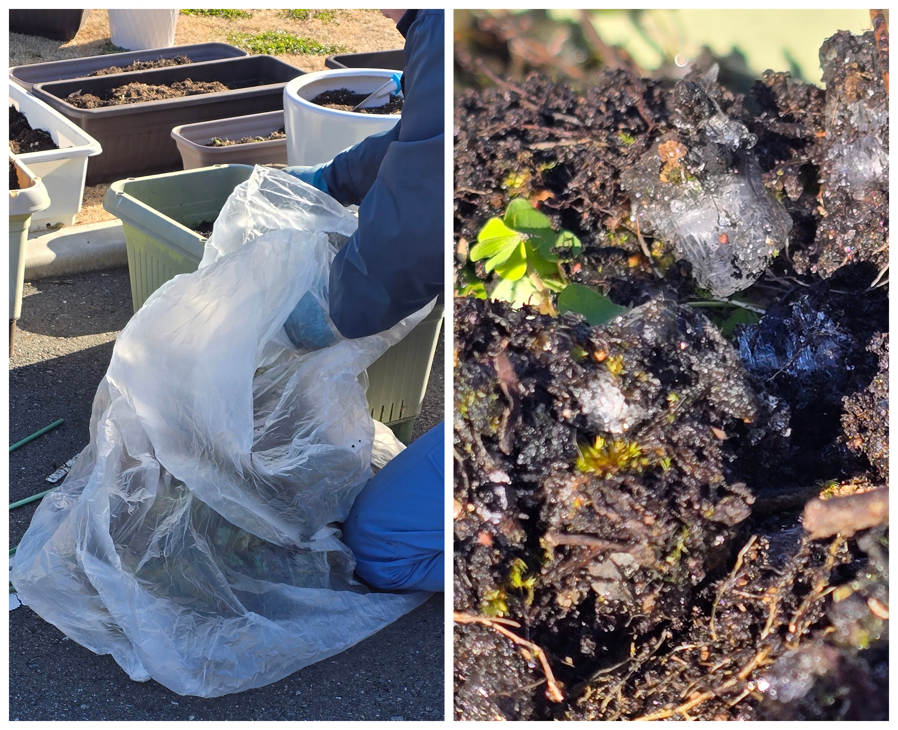 降りる霜にも負けず、地中で水分を吸い上げながら成長を続ける植物の姿に、生命の力強さをあらためて感じました。
